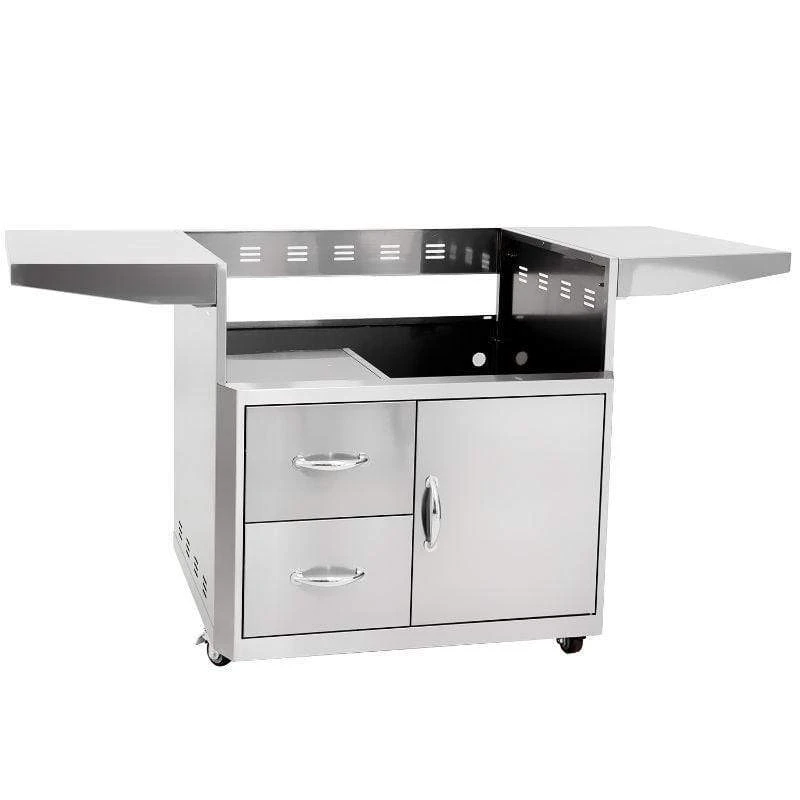 This Blaze stainless steel grill cart is specifically designed to house the Blaze Professional 3 burner gas grill. The two stainless steel side shelves keep your BBQ tools at hand and provide a convenient work area while you cook.