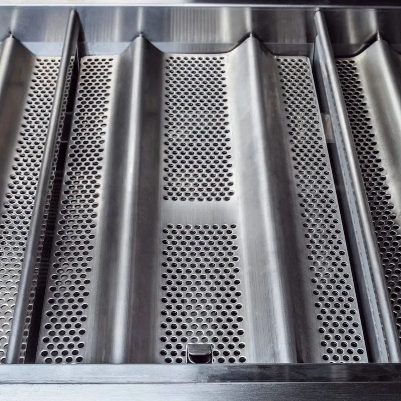 - This perforated piece sits inside the drip tray to help reduce the chance of a grease fire in the pan.