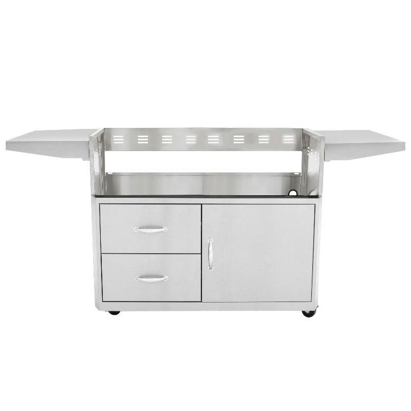 This Blaze stainless steel grill cart is specifically designed to house the Blaze Professional 4 burner gas grill. The two stainless steel side shelves keep your BBQ tools at hand and provide a convenient work area while you cook.