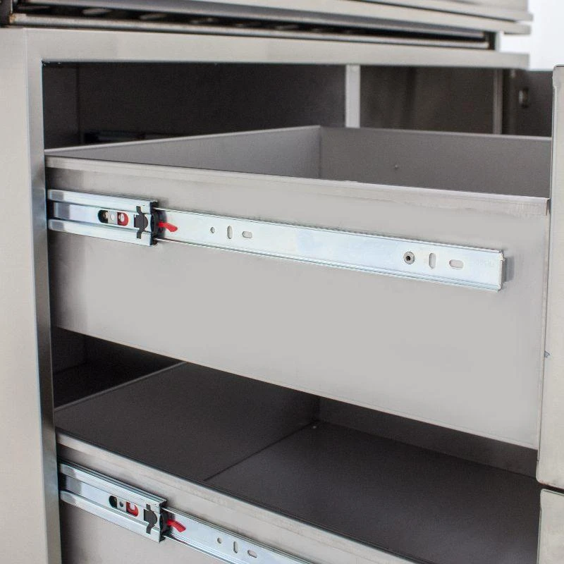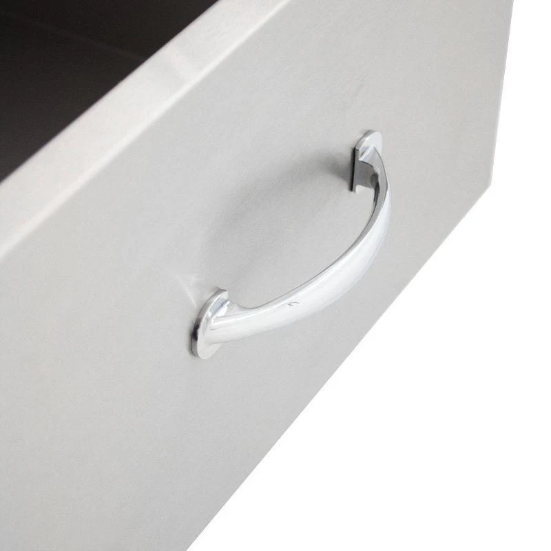 The Blaze grill cart also features one front door with a rounded handle to access the cabinet below the grill where you can store your propane tank. It also features two drawers with rounded handles to store your grill cover and BBQ accessories.