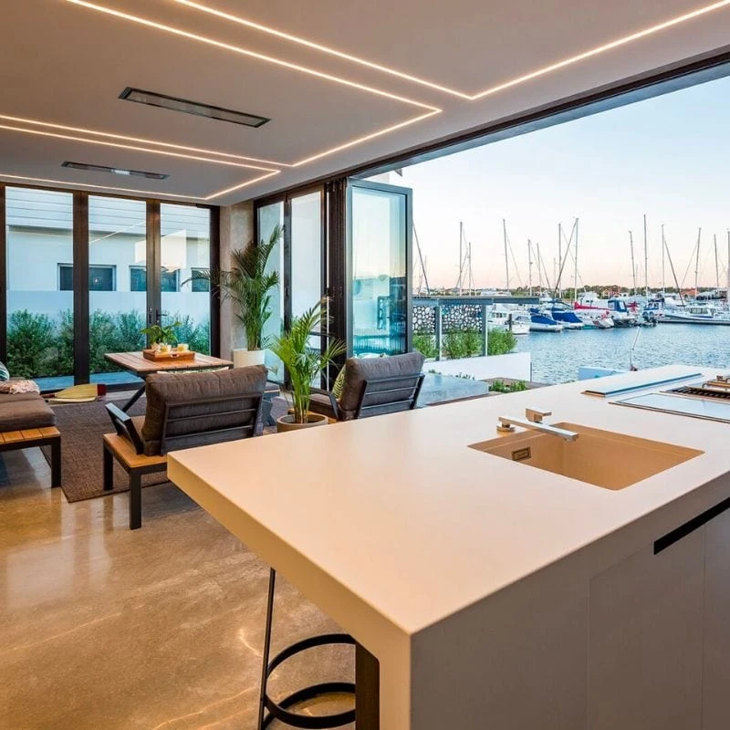 To counteract the hurdles of installing an outdoor heater near the coast where standard stainless steel can rust and deteriorate, Bromic engineered the Platinum Electric Marine heater series.