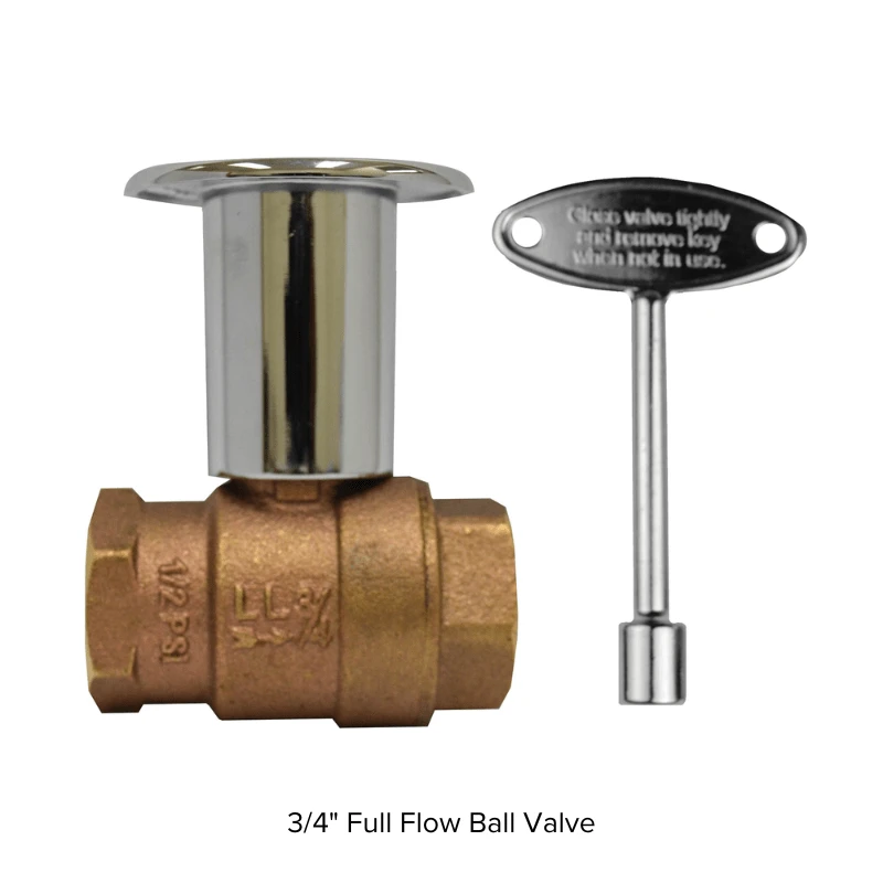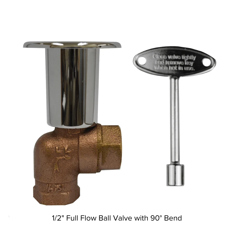 | Size | 1/2" Standard Key Valve, 1/2" Full-Flow Ball Valve, 1/2" Full-Flow Ball Valve 90° Bend, 3/4" Full-Flow Ball Valve, 3/4" Full-Flow Ball Valve 90° Bend |