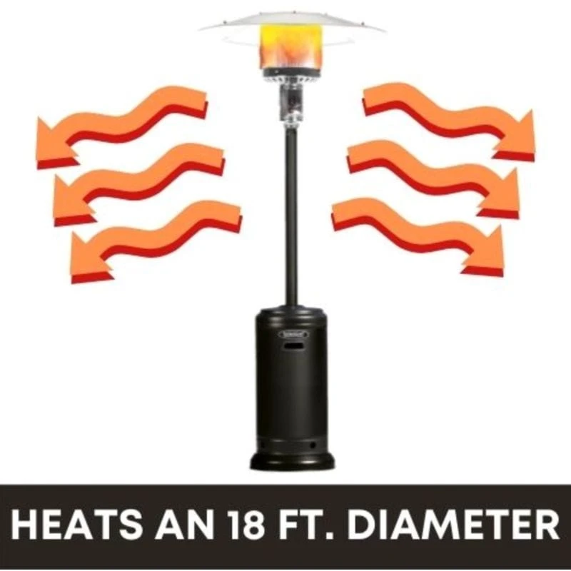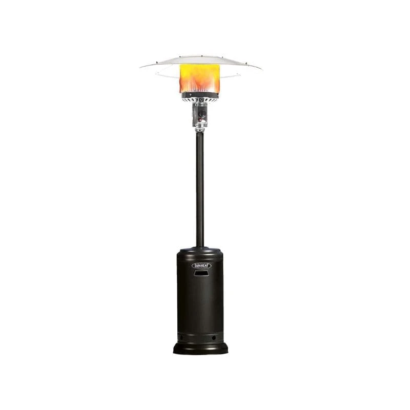 The Original SUNHEAT portable propane patio heater features a classic umbrella design used at commercial resorts and entertainment venues at an affordable price. The large four-piece aluminum reflector projects 46,000 BTUs of heat out over an 18 feet diameter allowing you to extend your outdoor living area to be used year-round.