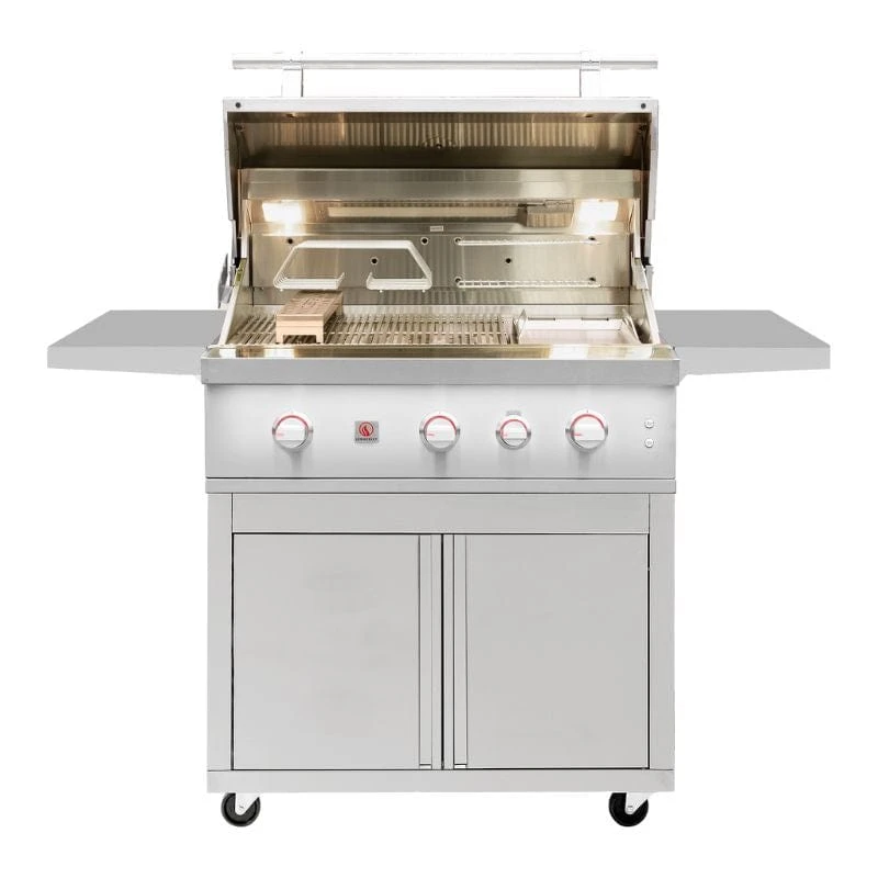 (Freestanding) Deluxe Cart Constructed from high-quality #304 Stainless Steel, this durable Cart delivers exceptional stability, ample storage, and convenient functionality for both casual and professional chefs. SHELVING: 2 Folding Shelves FEATURES: Interior Paper Towel Holder WHEELS: Front Locking Caster Wheels STORAGE: 2-Drawer & Magnetic Latch Access Door w/ Propane Tank Storage VENTILATION: Side, Rear, & Bottom Ventilation FINISH: #304 Stainless Steel Construction WARRANTY: The Gold Standard Lifetime Warranty is an Industry-Leading Warranty Designed to Protect Your Products for Life |