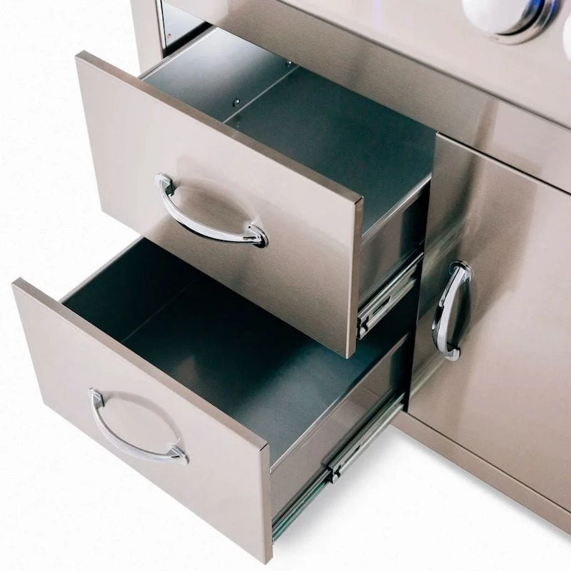 The Summerset Sizzler / Sizzler Pro 32″ Grill Cart offers a premium, built-in alternative. Constructed from high-quality #304 Stainless Steel, this durable Cart delivers exceptional stability, ample storage, and convenient functionality for both casual and professional chefs.